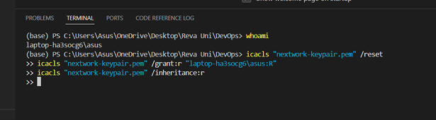 # First step - granting access to laptop user for key-pair formaticalcs "your-key.pem" /reseticalcs "your-key.pem" /grant:R "your-laptop-id:R"icalcs "your-key.pem" /inheritance:r