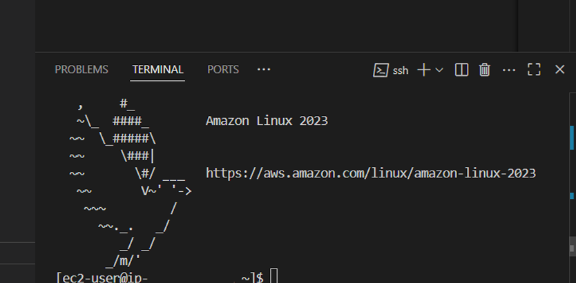 # Connecting to EC2 instance via SSHssh -i <my_pem_file_path> ec2-user@<public_ipv4_address># This command opens a secure tunnel to our cloud server