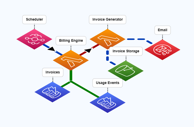 # EventBridge cron that actually worksevents:- schedule:rate: cron(0 9 1 * ? *) # 9 AM on 1st of every monthinput:action: "generate_monthly_bills"The invoice generation logic was a beast - calculating usage aggregations, applying tiered pricing, and generating PDF invoices. My favorite bug? Forgetting to convert Decimal to float for JSON serialization!