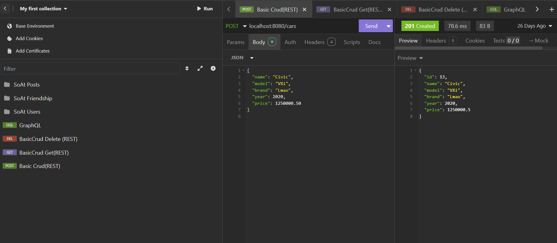 Both projects were thoroughly tested using Insomnia and Postman for REST API validation, and I also implemented GraphQL endpoints to understand the differences between REST and GraphQL approaches in API design.