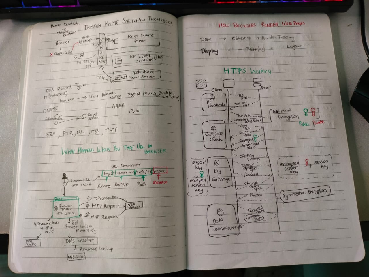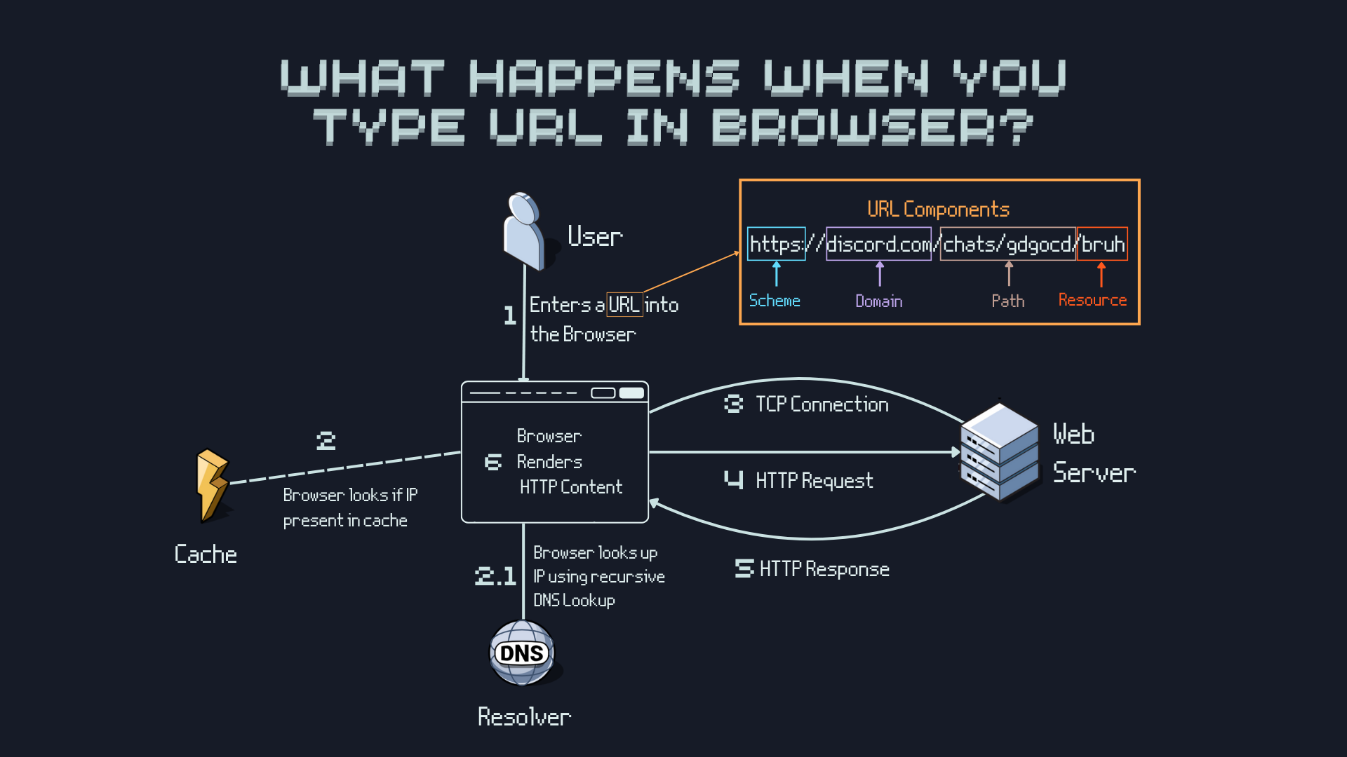 - example.com is typed into the browser, browser checks its local DNS cache first.