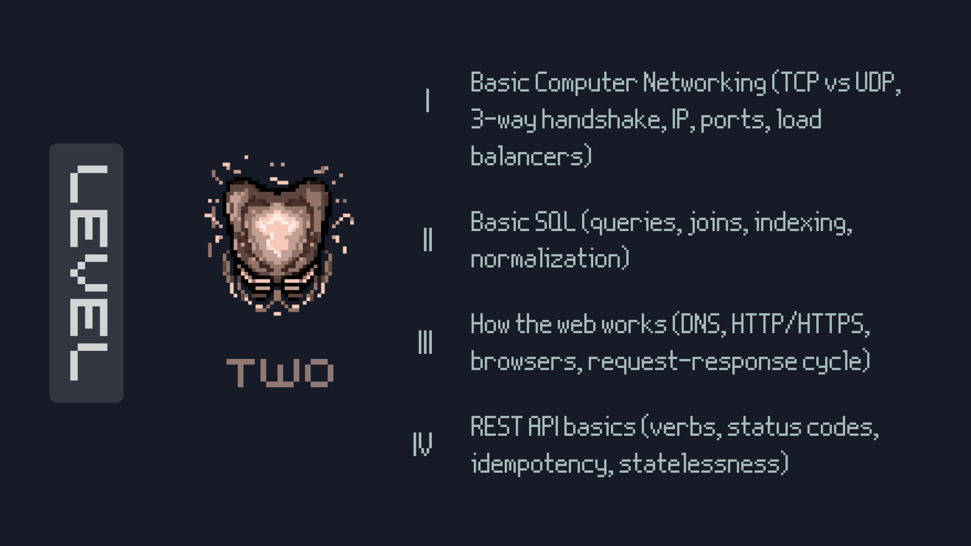 This is where you gain the knowledge of computer networking, how the web works, learning sql queries, and then learning about REST APIs would be beneficial [Not writing about REST APIs but I provide resources :)]. Ima mention few of the topics here itself.