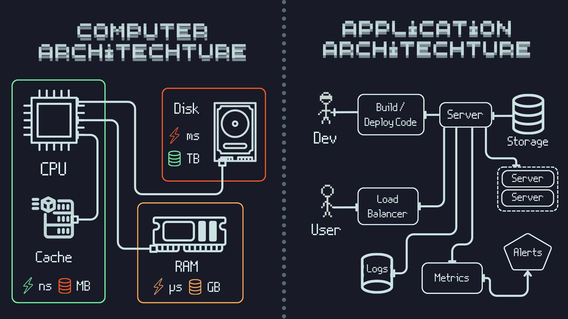 Similarly in application architecture we have different types of storages with different speeds and capacities