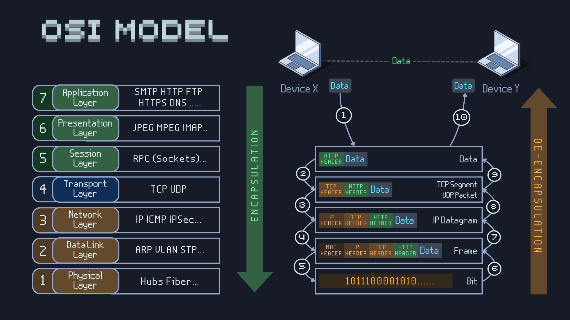 - Physical Layer: Deals with the physical transmission of data bits over a communication medium.