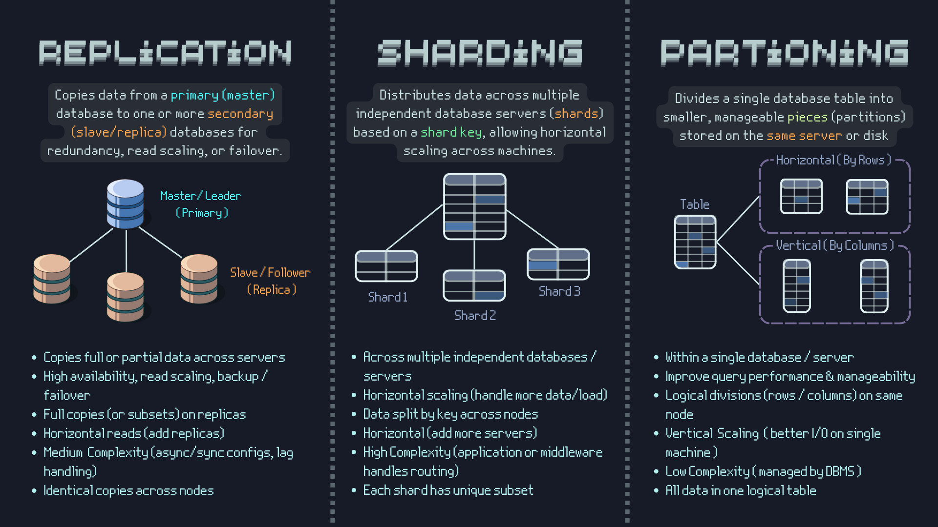 Welcome back to the system design prerequisites series! In Part 1, we covered the fundamentals from computer architecture to networking protocols. Now we're diving deeper into the advanced concepts that form the backbone of modern distributed systems. This part focuses on data management, scalability patterns, and security considerations that every system designer should understand.
